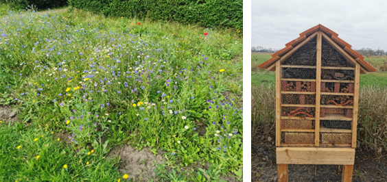 In 2021 hebben we twee maatregelen genomen die hopelijk verhogend werken op de biodiversiteit van met name het vlinder- en insectenleven. Zo zijn er op het erf van de voormalige boerderij van Admiraal drie bloementuinen plus een insectenhotel gerealiseerd.